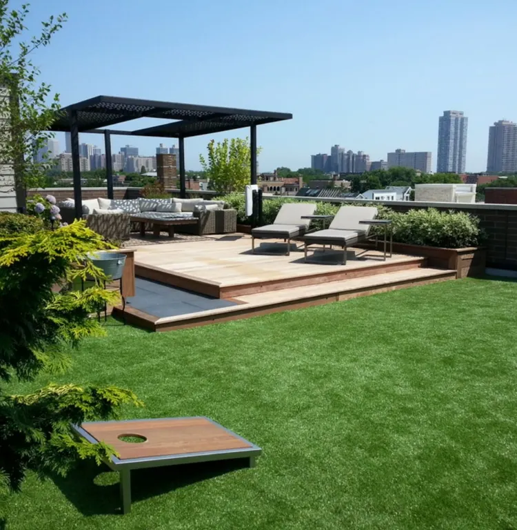 Our commercial-grade artificial grass in Dubai is engineered for high-traffic hospitality environments. It stays lush under the relentless sun, drains instantly around pool decks, and provides a safe surface for guests. We help you create stunning outdoor seating areas, entrance pathways, and rooftop terraces in Palm Jumeirah or Dubai Marina that enhance your brand and cut operational costs.